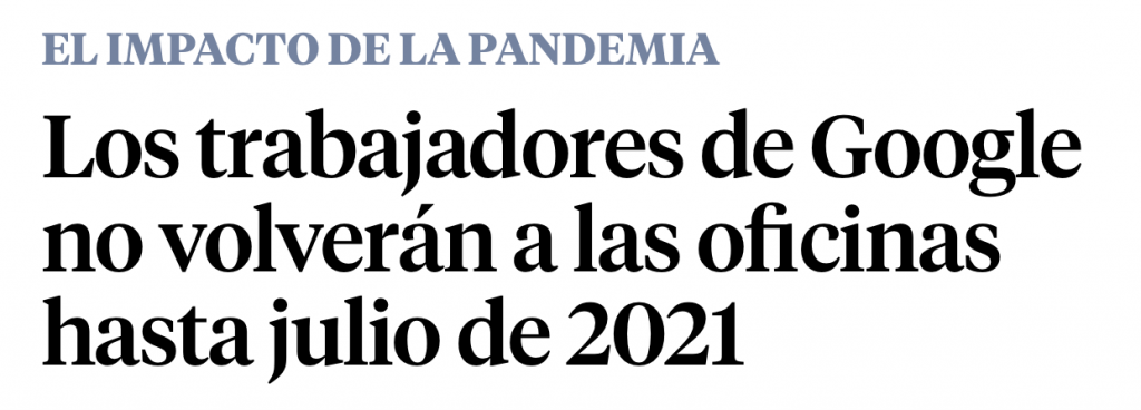 El tiempo dirá si esta tendencia se revierte o no, pero está claro que esta noticia pone en entredicho conceptos como los polos digitales o parques tecnológicos. Y si no, que se lo digan a Google, que ya anunció hace meses que el teletrabajo se extiende hasta verano de 2021.